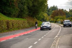 Auch dort, wo die örtlichen Gegebenheiten keine baulich getrennten Radwege ermöglichen, sollen künftig Lücken im Radwegenetz auf Freilandstraßen geschlossen werden können. Die Sonderlösung „Mehrzweckstreifen mit schmaler Kernfahrbahn“ im Freiland wird nun wissenschaftlich geprüft.
